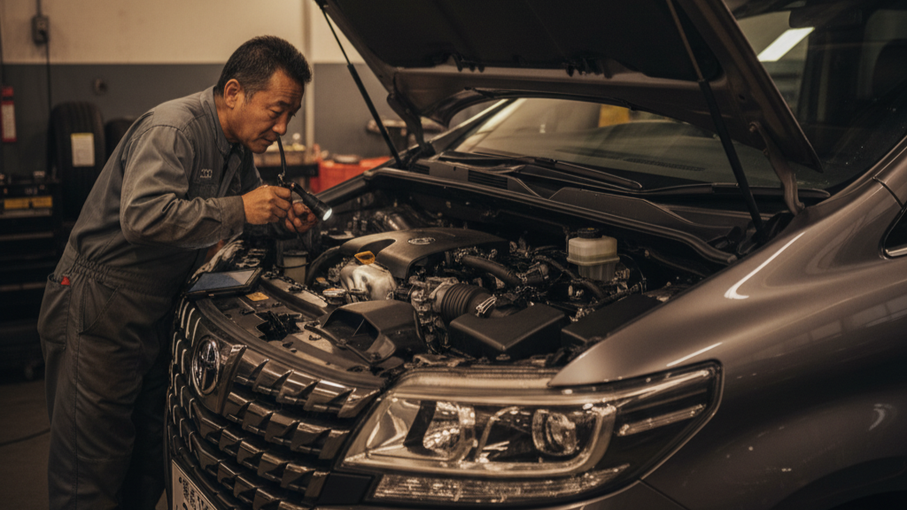 ディーラーでの点検は、単に部品の交換を行うだけでなく、アルファードの設計を熟知した専門のメカニックが、異音の発生源を音響解析装置などを使って特定できる点が強みです。