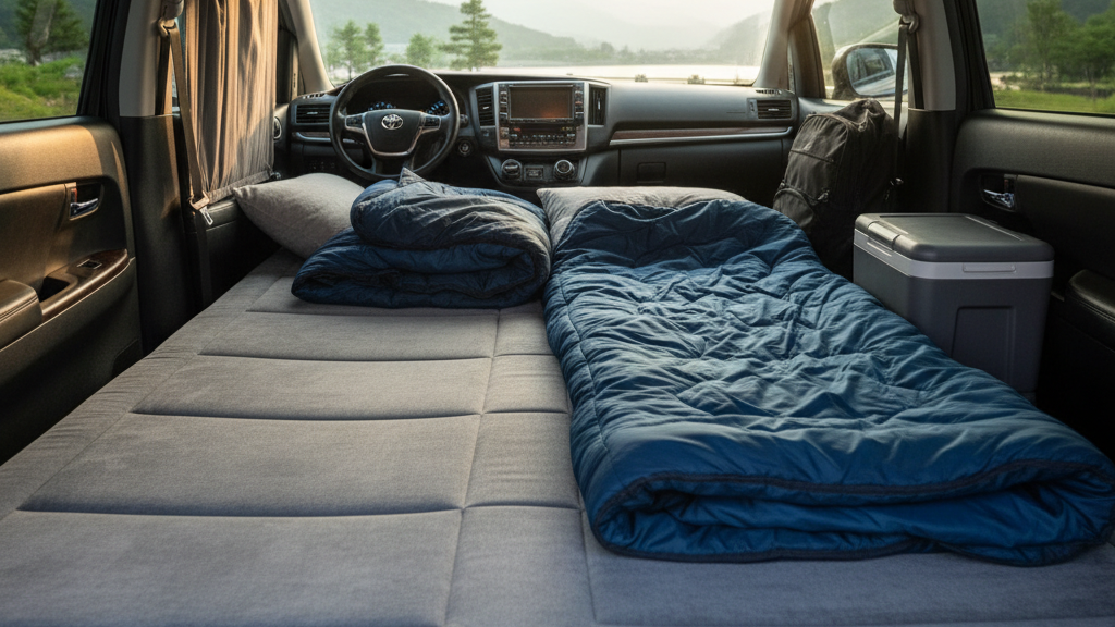 - アルファードで快眠を得るためには、最低8cm、理想は10cmの厚みを持つインフレータブルマットを選び、不快な段差を解消することが最重要です。