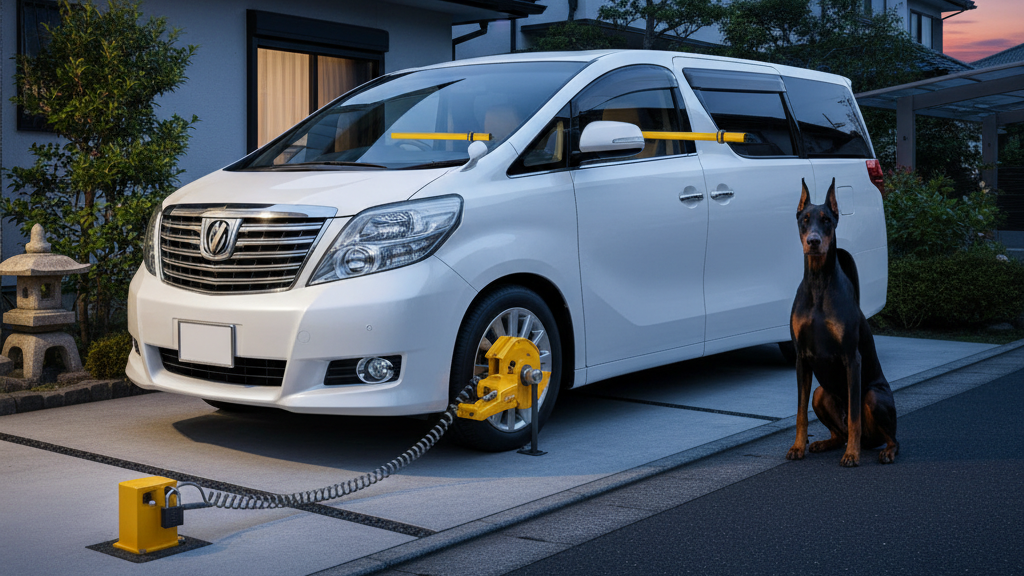 前章で述べた通り、アルファードの盗難対策には多重防御が不可欠です。ここでは、私が自身の盗難未遂の経験と、長年の取材で得た知識に基づき、実際に泥棒が犯行を諦めるきっかけとなった効果の高い防止グッズを厳選して5つご紹介します。これらのグッズは、単体で使うよりも組み合わせることでその効果を最大限に発揮します。