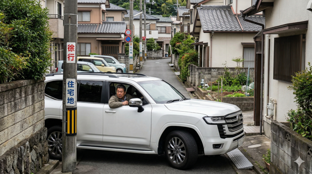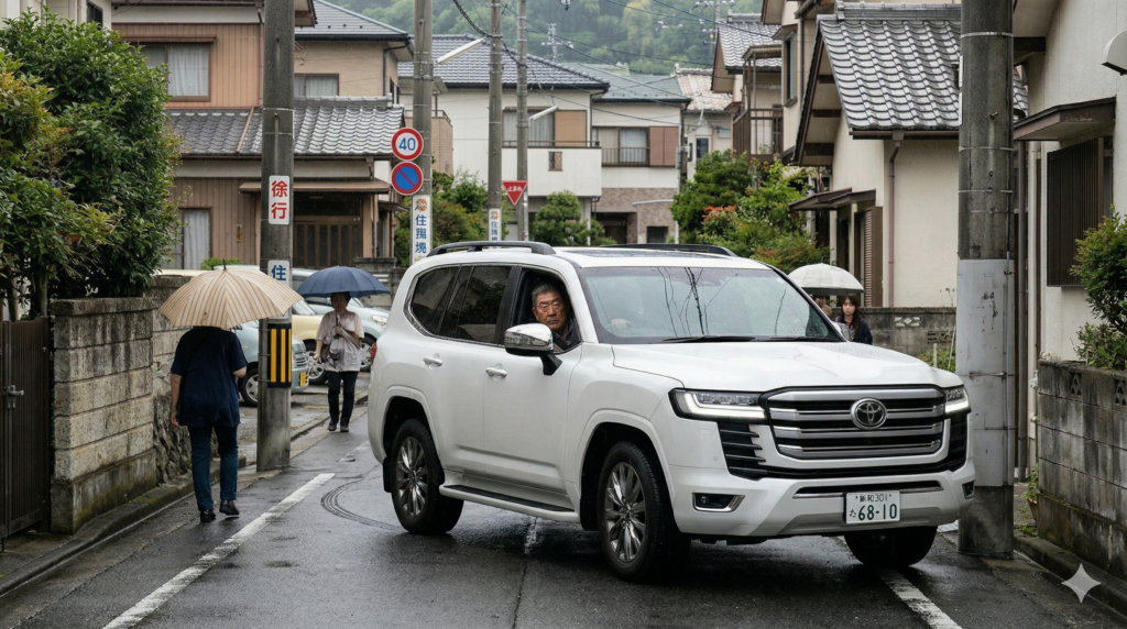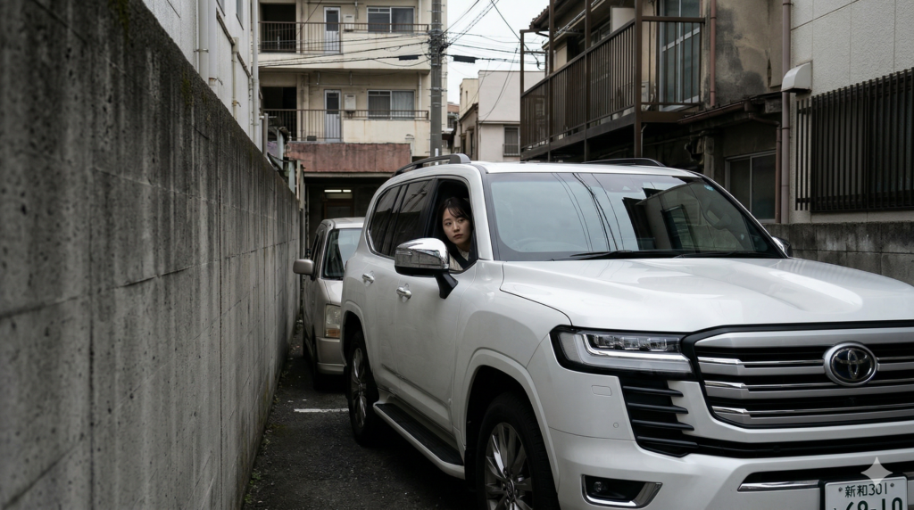 日本の道路、特に旧市街や住宅街の生活道路は、ランクルのようなフルサイズSUVを想定して作られていません。 初心者が狭い道で不安になるのは、単なる心理的なものではなく、物理的な限界に近い状況に置かれるからです。