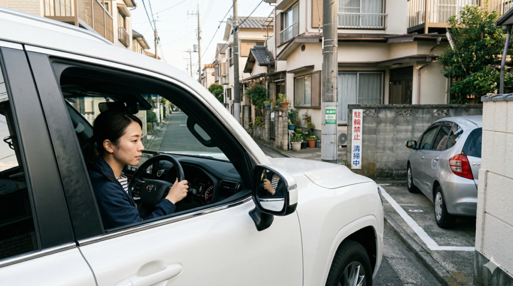 日本の都市部や住宅街は、ランドクルーザーにとっては「迷宮」そのものです。 特に対向車が来た際の離合(すれ違い)は、初心者にとって最も心臓に悪いシーンでしょう。 しかし、ここでも「ランクルの強み」を活かした戦い方があります。