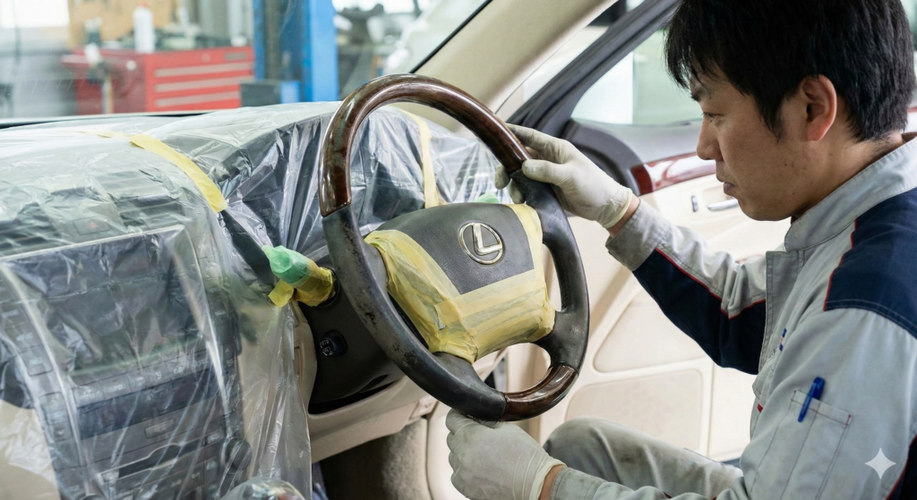 ただし、ダッシュボードのような広範囲な部分や、安全に関わるステアリングの補修は、失敗した際のリスク(パーツの全交換が必要になる等)が大きいため、プロに任せることを強くおすすめします。