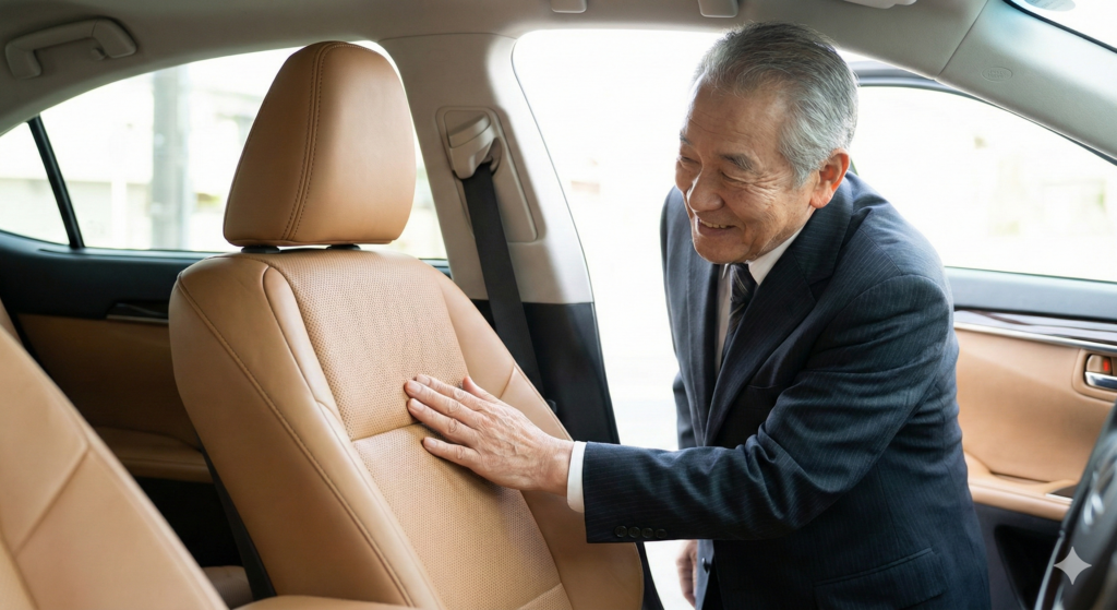 本革シートへの安価な消臭スプレーの直噴は厳禁です。成分が毛穴を塞ぎ、塗装膜の剥離やシミの原因となります。正しいアプローチは「蒸しタオル」による毛穴の清掃です。熱い蒸しタオルでシートを優しくプレスし、毛穴を開かせてから汚れを浮き上がらせます。その後、レクサス純正ケアキット等で栄養を補給することで、革本来の気品ある香りを取り戻せます。