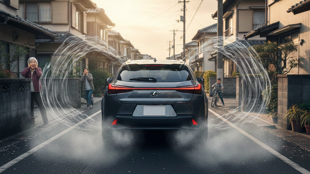 これらの設計思想は、UX 200が目指す「軽快で応答性の高い走り」を実現するためには必要な要素であり、一概に欠陥とは言えません。しかし、オーナーにとっては、その排気音が「うるさい」という不満や不安につながるため、構造を理解した上で対策を考えることが重要です。また、排気音の大きさは、周囲の建物の反響や時間帯の静けさによっても大きく感じ方が変わることを頭に入れておくべきでしょう。
